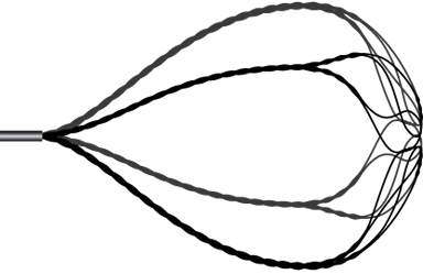 Специальная корзинка в виде парашюта из тонких струн. Предназначена для сбора и извлечения мелких фрагментов камней. Отсутствие кончика позволяет раскрыть корзинку и захватить камень без риска нанесения травмы и перфорации.